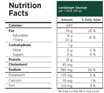 Our Landjaeger Sausage is now crafted in Canada, but not to worry, we’re still using our traditional German hunters’ sausage recipe that has stood the test of time. Let the aroma of our traditional blend of spices and rich red wine whisk you away to the beautiful German countryside.